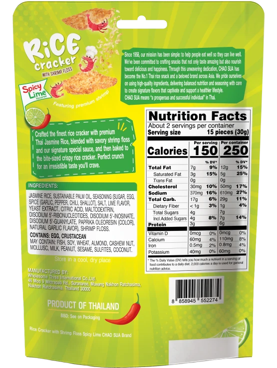 Crafted the finest rice cracker with premium Thai Jasmine Rice, blended with shrimp floss and our signature special sauce, and then baked to the bite-sized crispy rice cracker. Perfect crunch for an irresistible taste you'll crave.