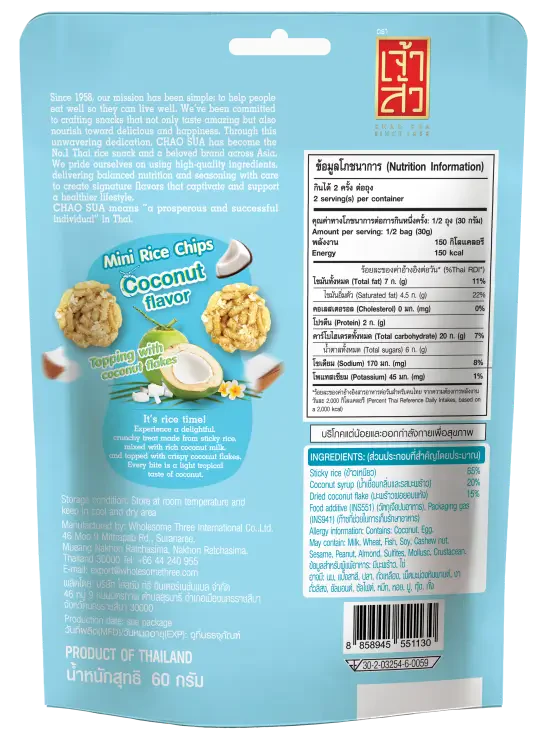Experience a delightful, crunchy treat made from sticky rice, mixed with rich coconut milk, and topped with crispy coconut flakes. Every bite is a light tropical taste of coconut.
