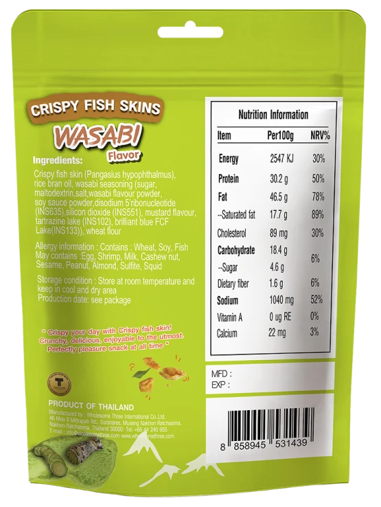 - Perfect balance of pungent from wasabi flavor and nutrition form fish skin